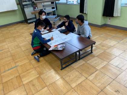 深草のまちにちなんだマスの内容を話し合う場面は,放課後とは思えない真剣な様子でした。