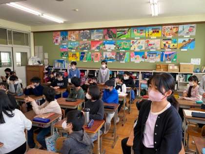 朝の会では,日直が話題提供しています。
