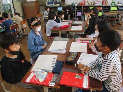 国語科の学習でそうだんにのる学習が始まりました。「早くねるには,みんなはどうしていますか。」「つかわなくなった教科書はどうしていますか。」「妹が食べる時にねないようにするには。」などいろいろな相談をグループで解決しました。みんな相談するのは楽しそうです。