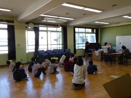 3時間目、校内を回っていると、本館3階の多目的室に5年生がキレイに並んで座っています。何をしているかわかりますか?