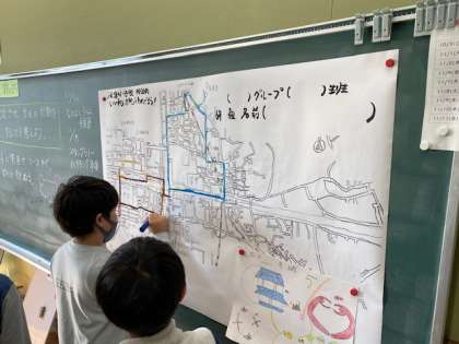 この日は,みんなが通るルートをマジックで示し,安心安全ボランティアの方にご協力いただくポイントを見つける資料作りを行いました。