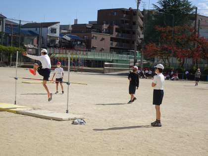 11月7日(月)4校時 6年・体育「走り高とび」