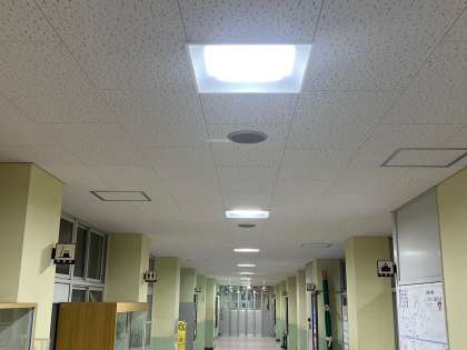 まだまだ交換作業は続きますが、すでに交換された教室や廊下は、とても明るくなりました!