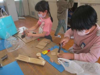 木や木の実の素材を生かした、とっても素敵な「すみか」が出来上がってきて、いい感じです!!!