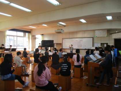 音楽室での練習が最後でした!次は,大きく広い体育館での演奏になります。