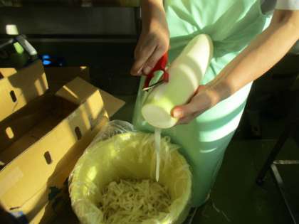 関西では、おでんのことを「関東煮」ともいいます。関東煮のだいこんは、手で一本ずつ皮をむきました。こんぶとかつおのおだしで、じっくり煮込んで作ります。