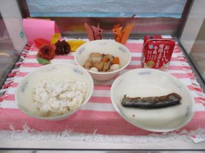 今日の給食は、麦ごはん、牛乳、さんまのしょうが煮、関東煮でした。