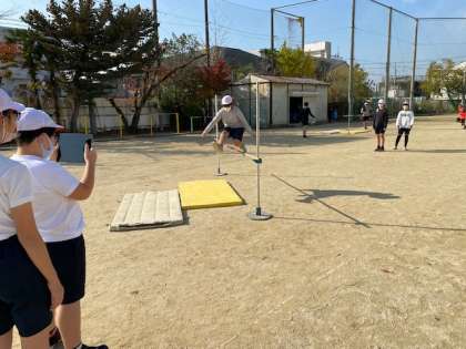 さらなる記録を目指して,動画で確認したり,応援したりして走り高跳びを楽しみました。