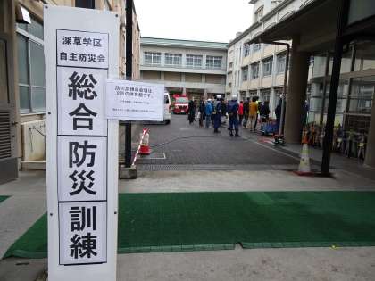 「令和4年度 深草学区総合防災訓練」が深草小学校を会場として実施されました。「総合防災訓練」は、深草学区自主防災会の主催で、地震による災害を想定し、地域にお住まいのみなさまの防災・減災につながる意識を向上させることとともに、深草学区自主防災会さんと各種団体様・地域の皆様・深草支所・学校など、関係する皆様と機関が協力できる体制を作っていくことを目的として実施されました。