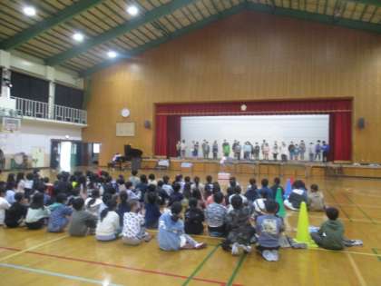今日は、各クラスの発表を見合い、いいところをたくさん見つけました。