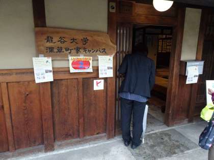11月23日(祝・水)「ふかくさ100円商店街」龍谷大学町家キャンパスをのぞいているのは・・・だれ先生かわかるかな?