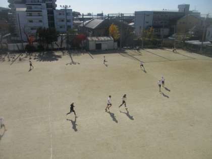 トラックを走るか、運動場を大きく走るか、それぞれ選択して走ります。走った後はジョギングカードに記録をします。目指せ嵐山!