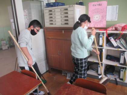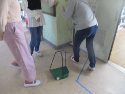 教室や廊下を自主的にきれいにしてくれる人たち。誰かがしていたら、それに続いて手伝う人が多いのがこの学年の良いところです。