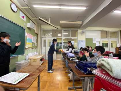 クイズ係の取組で,優勝者にプレゼントが渡されました。