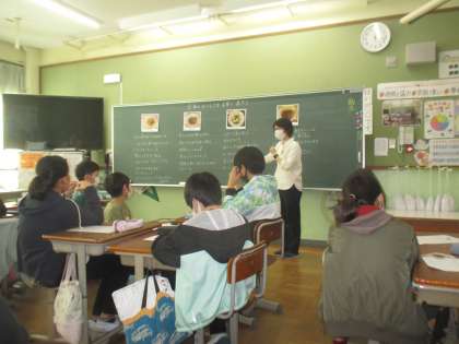 栄養教諭の久保田先生の授業です。