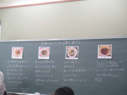 子どもたちが好きなメニュー4つをそれぞれでおいしさを言葉で表すことを考えました。
