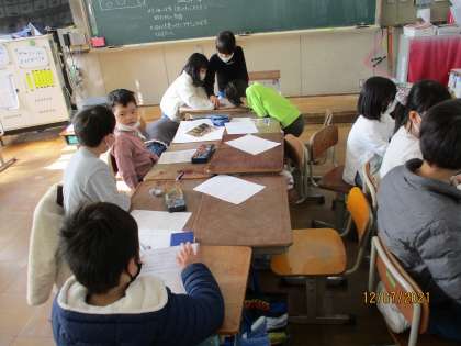 生活科の学習で,お店の方に教えてもらったことをグループごとにポスターにまとめています。どのグループも,インタビューの内容や,写真を貼って素敵なポスターになるよう工夫しています。