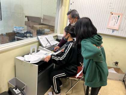放送委員会の放送によるお昼の“なぞなぞクイズ”は給食時間に放送されます。放送室の前を通ると、放送担当のK村先生と放送委員会の木曜日担当の児童が放送室で放送を始めていました。