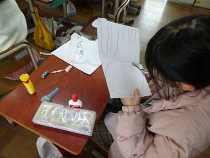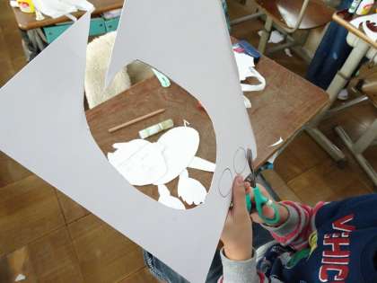 今日は画用紙を切りとって、うで・太もも・手・体など、体のパーツをひとつずつ作っているようです。どんな版画ができていくのか、楽しみです。また、見に行きますね!