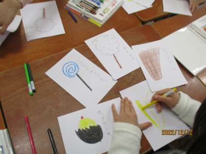 単元のゴールものの名前をたくさん知って、お店屋さんごっこをすることです。今日はその準備のためにお店屋さんごとに集まって、品物を作りました。みんな「売れるかなぁ☆」と丁寧に思いを込めて作っていました。並べると、たくさんのものの名前を知れそうです。