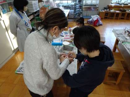 12月14日(水)PTA本部主催「ワークショップ(しめ縄飾りづくり)」3日目 @図工室【北校舎2階】 今日も笑顔でやさしくアドバイス!!!