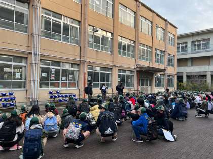 今日は6年生が、校外学習で「奈良県平城京跡歴史公園」に出かけます。昨日よりも寒さも和らぎ、いいお天気のもと出発です。