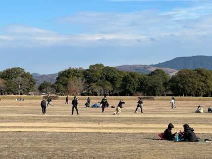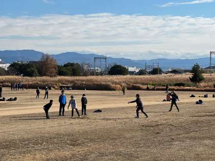 昼食を終えた人から、遊んでいます。サッカー、手打ち野球、おにごっこなどなど、みんな自由に過ごしています。