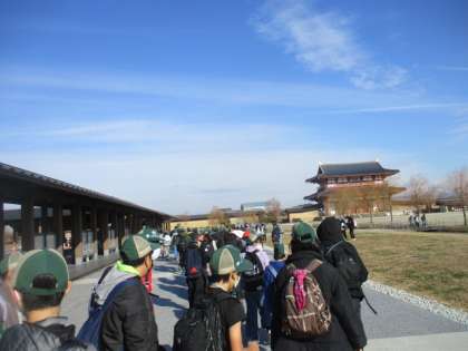学校を出発して約1時間で平城京跡歴史公園に到着!グループに分かれて行動します。
