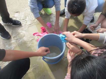 京キッズRUNの校内予選会!でも運動場がびちゃびちゃ…。そんな時「出場する人が気持ちよく走れるように運動場の水を取りたいです。」という声が。早速、有志を集めて運動場の整備を行いました。そうやって積極的に人のためになることを考えて行動できるって素晴らしいですよね。寒い中でしたがよく頑張ってくれました。ありがとう!