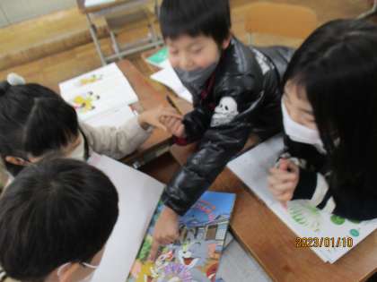 国語の学習では「ききたいな、ともだちのはなし」という単元で、冬休みに読んだ本を紹介し合いました。実際に本を見せながら紹介する人もいて、「めちゃくちゃおもしろそう!誰が出てくるの?」「今度読んでみたい!」「どこで借りたの?」と質問しながら発表し合っていました。