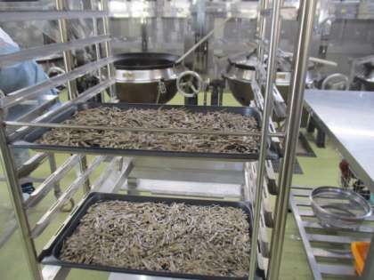 煮しめは、具材一つ一つを家族に見立てて、ひとつの鍋で炊くことから「家庭円満」、ごまめは、昔だしをとった後の煮干しを畑にまいたら五万と作物がとれたことから「豊作」の願いがこめられています。すぼしはスチコンでカリッとするまで焼いてから、ごまだれにからめています。香ばしさがおいしいポイントです。
