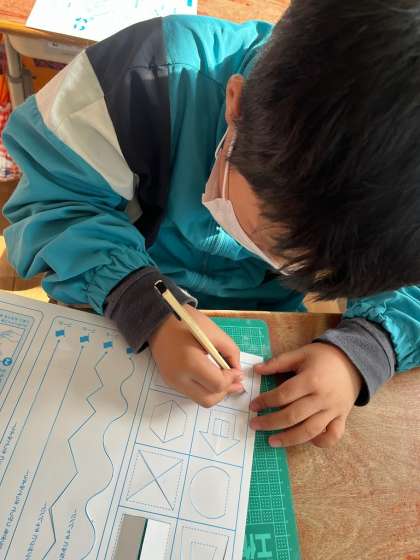 今日のめあては、「カッターナイフで紙を切ろう」とういうことで、