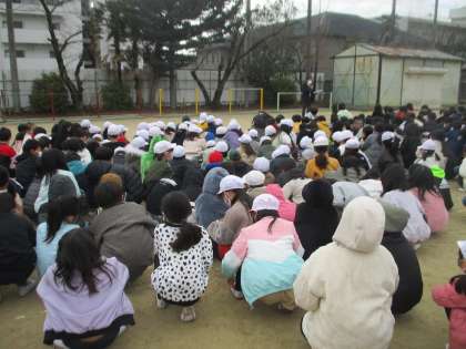 今日は,休み時間を使って自分たちで身を守る行動をしようというめあてのもと,地震の避難訓練をしました。運動場で遊んでいた子,教室にいた子などいざという時にどのような行動をすればよいか確認しながら行動しました。ふりかえりでは,「おはしもて」の中で,特に「しゃべらない」が出来なかったということが出てきました。集団行動の中では,しっかり聞くことの大切さを改めて確認しました。