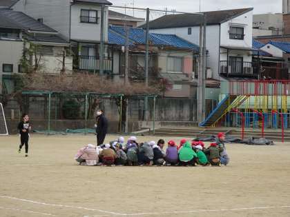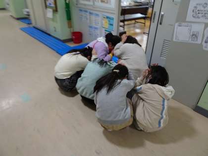1月17日(火)避難訓練(地震)「頭を守る“ダンゴムシポーズ”できたかな?」