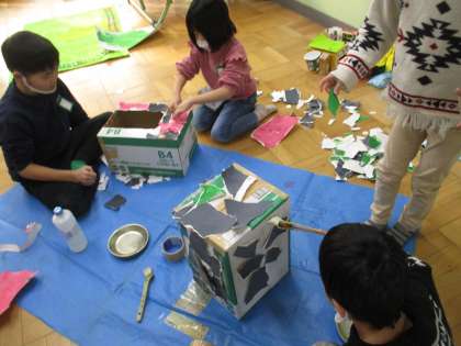 巨匠展の作品作りも大詰めです。今年の伏見中支部のテーマは「ミライタウン」。未来にこんなものがあったらいいな。そんなことを考えながら作っています。宇宙センターにつながるエレベーターを作っているところです。