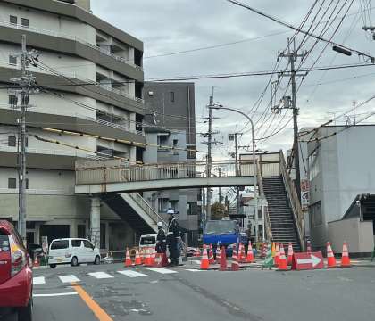 1月19日(木)深草横断歩道橋の撤去工事「朝になると、とうとう歩道橋が・・・なくなっていました!!!」