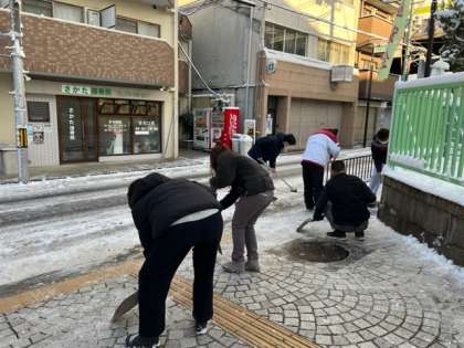 1月25日(水)「雪かき」児童が登校してくる時間まであと少し・・・教職員で力を合わせて雪を取り除きます!