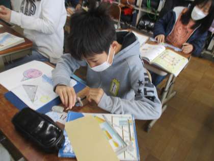 円周測定マシーンを使って、円周と直径の関係を調べました。直径4cm、直径5cm・・・と順番に確かめていきました!