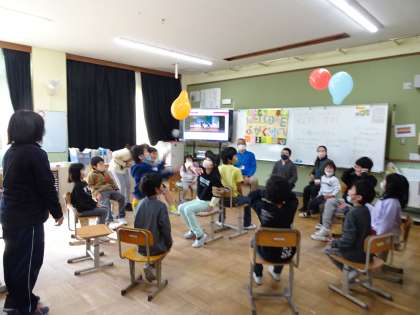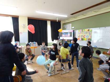 今日は、稲荷小学校の育成学級のお友だちが深草方学校に来てくれました。みんなで図工展を鑑賞したり、ダンスをしたり、風船バレーをしたりして、楽しく交流することができました。