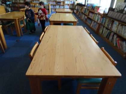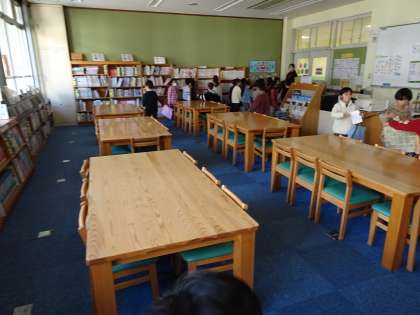 4校時、1年生が図書館を利用しています。図書の時間が終わり教室に帰るとき、本を片付けるだけでなく、みんながきちんといすを机の中に入れています。使い終わったあとに、きれいにいすがならんでいると、とても気持ちがいいですね。すごいぞ!1年生!!
