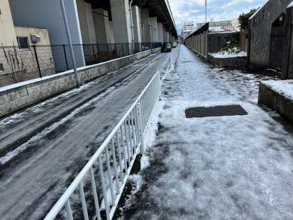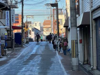 1月26日(木)登校時「すべりやすい!」学校周辺道路には、まだまだ凍っているところが・・・明日の朝の登校時も気をつけて!