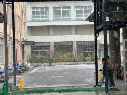 天気予報では、午後から積雪となるはずでしたが、午前中から雪がちらついています。今日も雪が積もるのかなあ・・・もしも、雪が積もったら、道を歩くときなどは十分注意してくださいね。