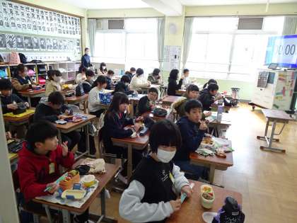 5年生の教室に行ってみると・・・5年生の教室から「いただきま〜す!」