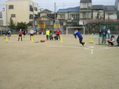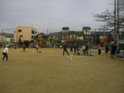 先生チーム、6年生担任の3人で2点先制!(ホームラン含む)