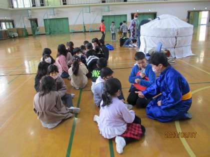 モンゴルのジャンケンを教えてもらいました。日本とは違いますが,慣れるとみんなずっとジャンケンしていました。大盛り上がりです。