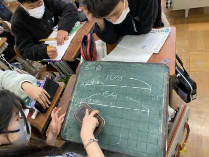 全体の量がわからないので,割合の時のように1として考えたり,適当な数字を当てはめたりして,ループで工夫して考えています。
