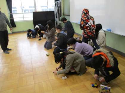 理科の時間にモーターを使って走る車を走らせました。向こうの壁までたどり着いた車や、なぜか逆走する車もありましたが、とても盛り上がりました。