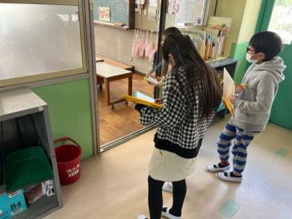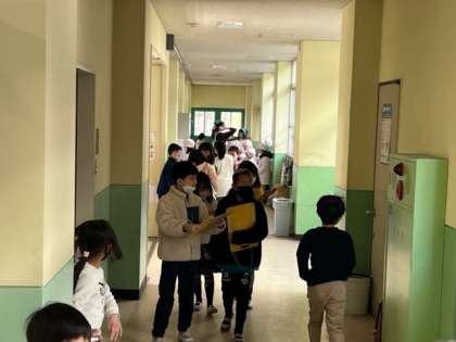 3年生のみんなが、校内を歩き回って調べ学習をしています。