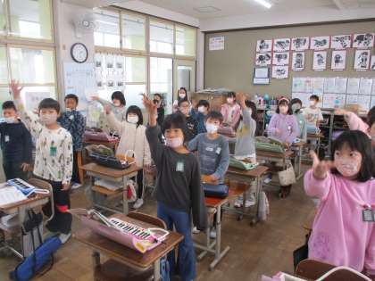 六年生を送る会の歌の練習をしています。サビのところは,手話もします。みんなやる気マンマンです。