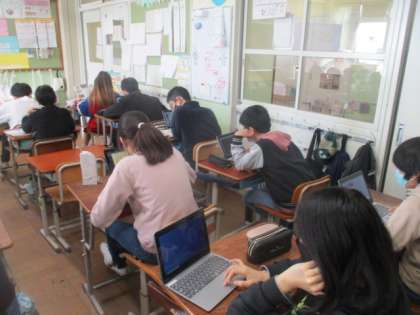 日本とつながりの深い国々の単元は調べ学習をタブレットでしています。
